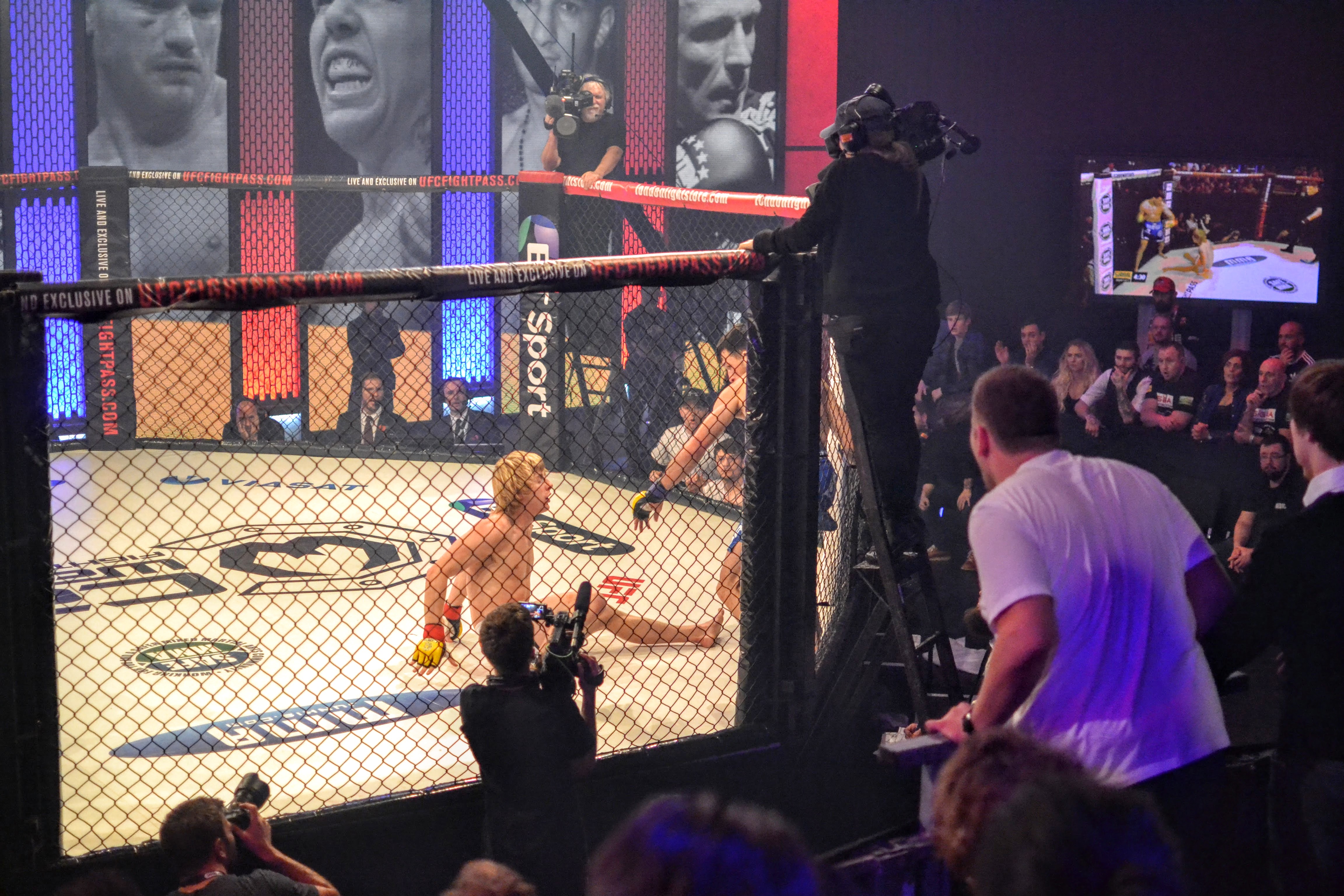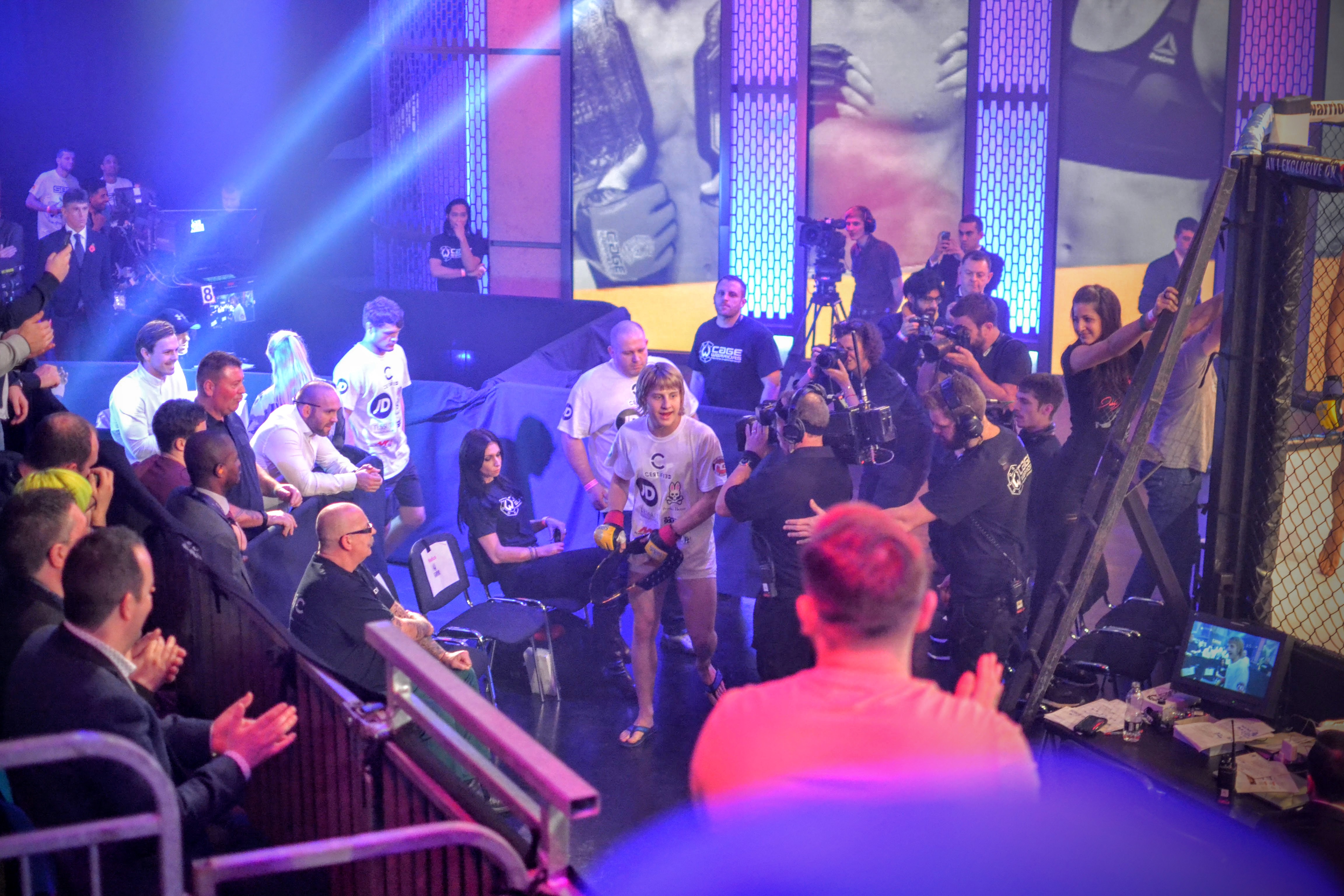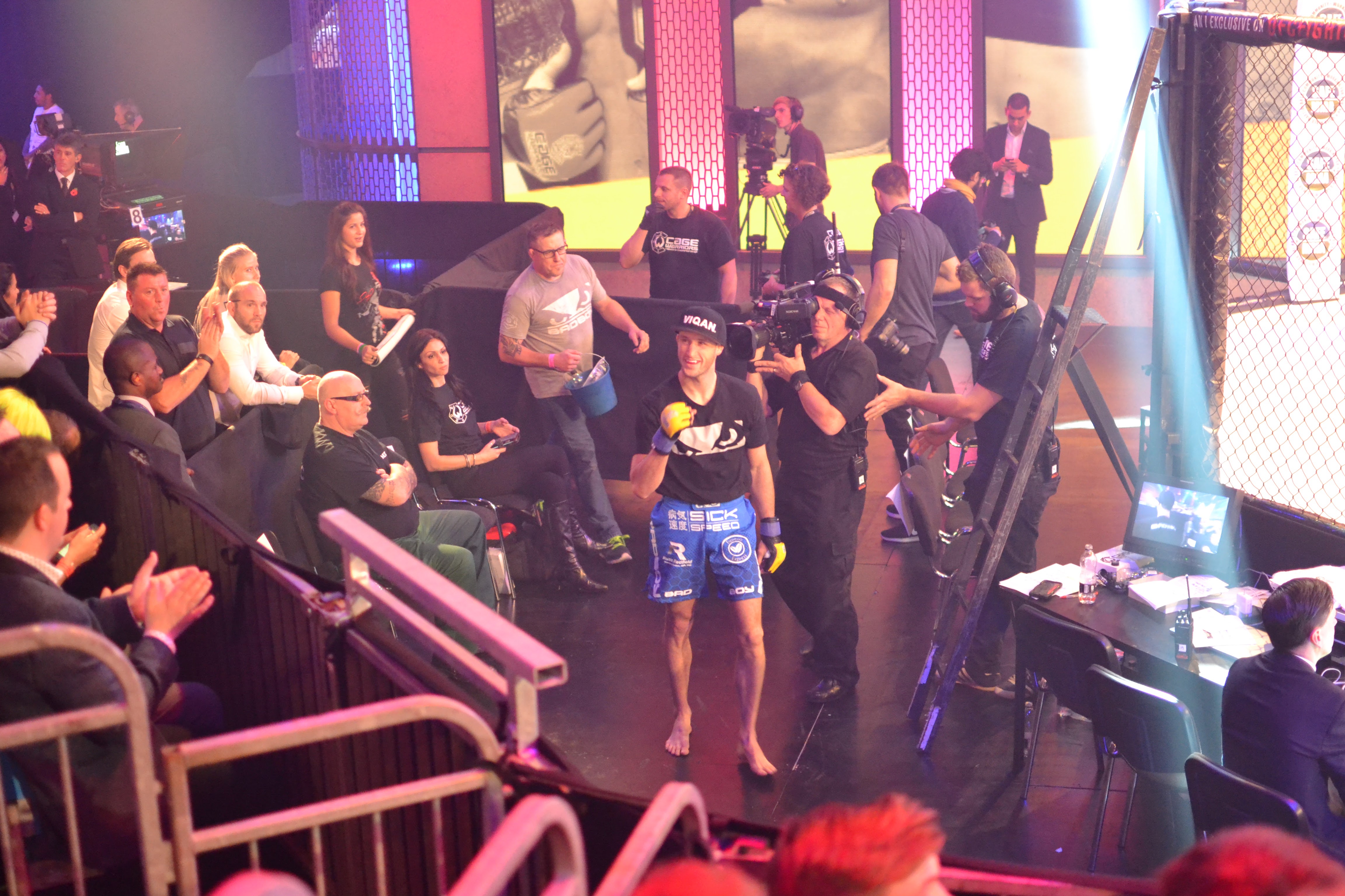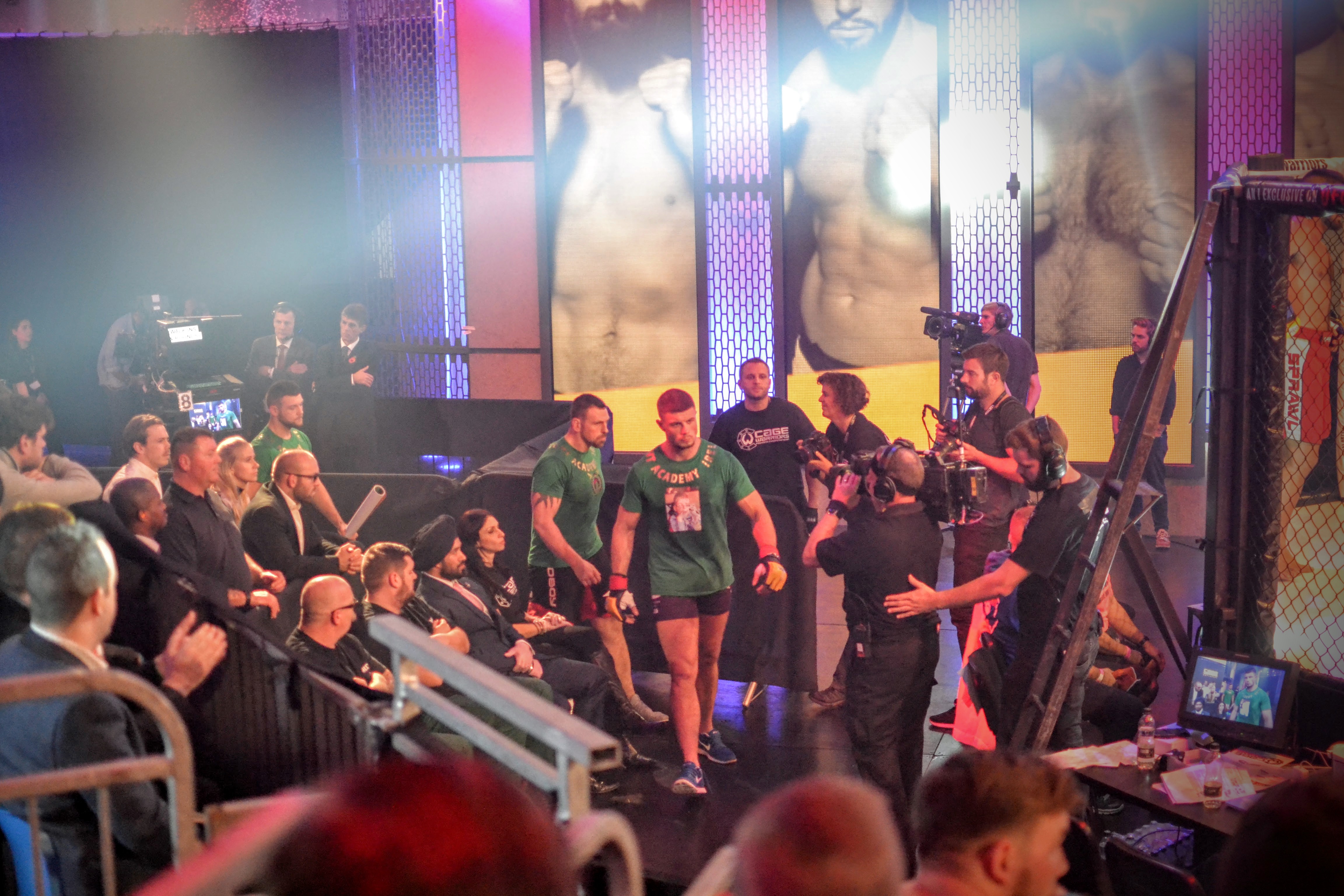 If you have ever watched beyond the octagon, there are a few of us that did or seen any of the BT studio sports shows then you will be familiar with the studio that the octagon was set up in, now to be honest as this was not a paying crowd and the fighters didn’t have their usually level of support I’m not sure how the atmosphere came across on TV but it only seemed like the levels reached tipping point when both Next Gen fighters with the major level of crowd support came alive, now if you have ever seen a Paddy ‘The Baddy’ Pimblet walkout it really is something else the crowd sing and dance along to his walkout song Where’s your head at, for him the energy he expends on his walkout alone is crazy but it did really bring the crowd alive.