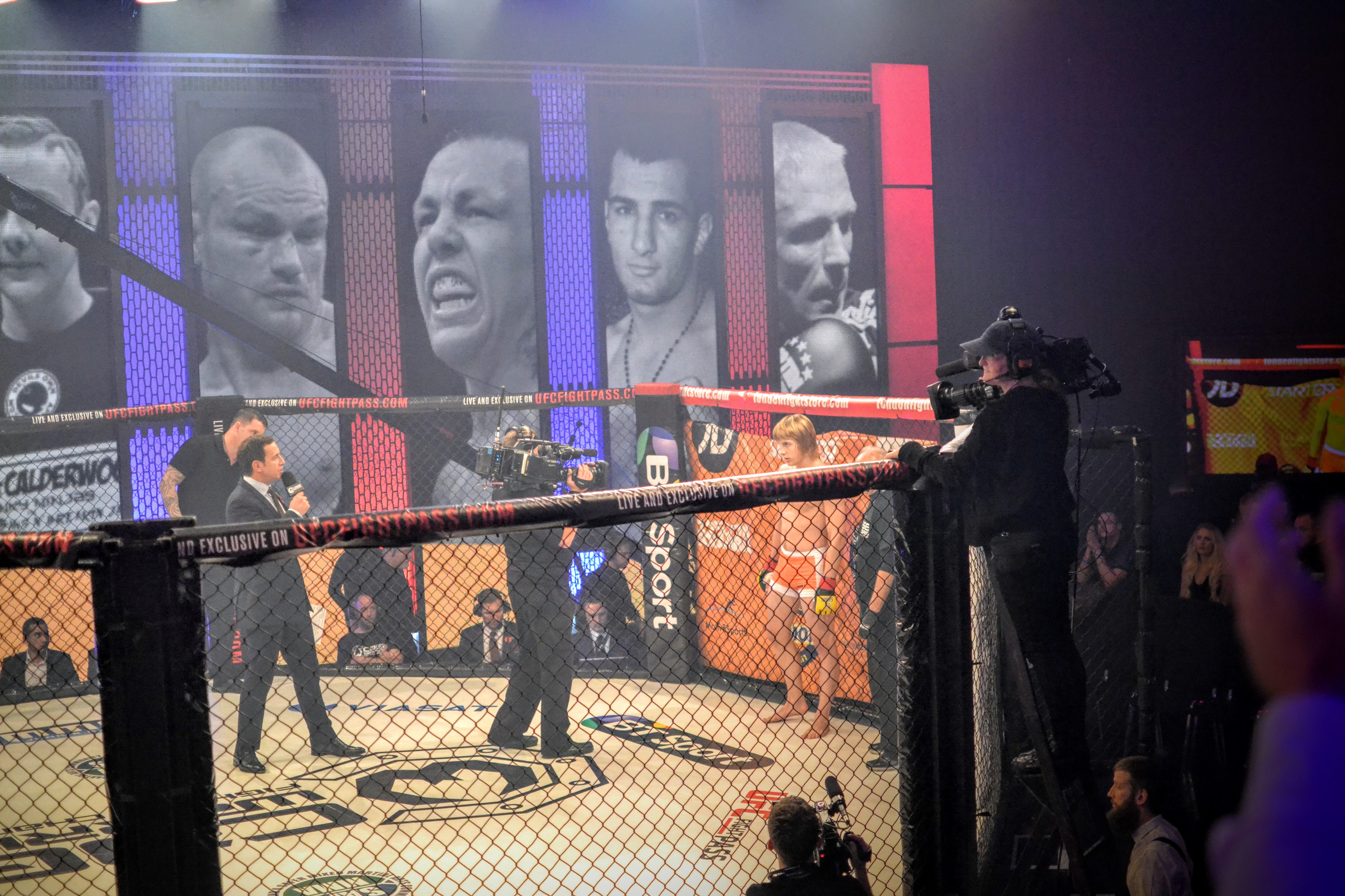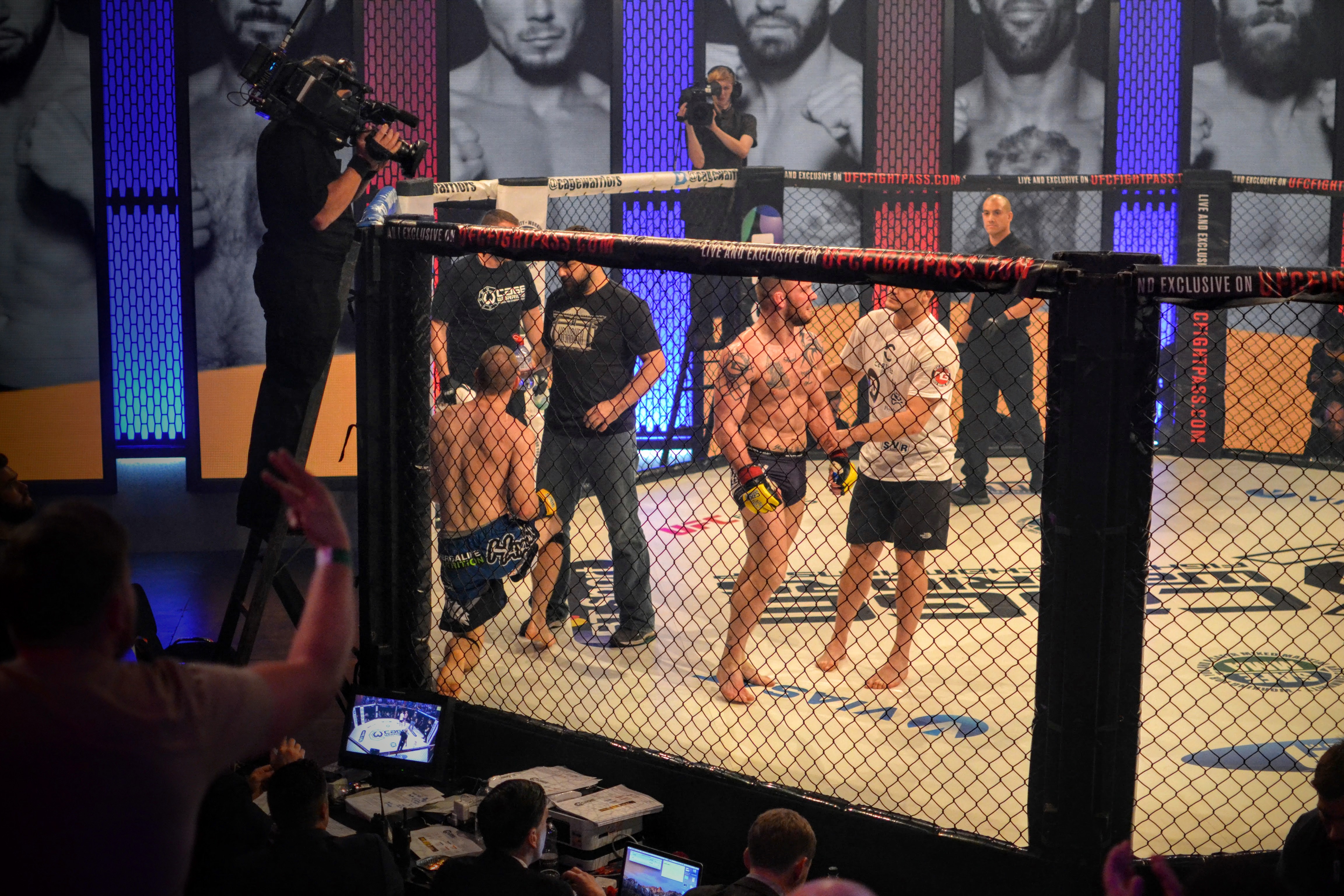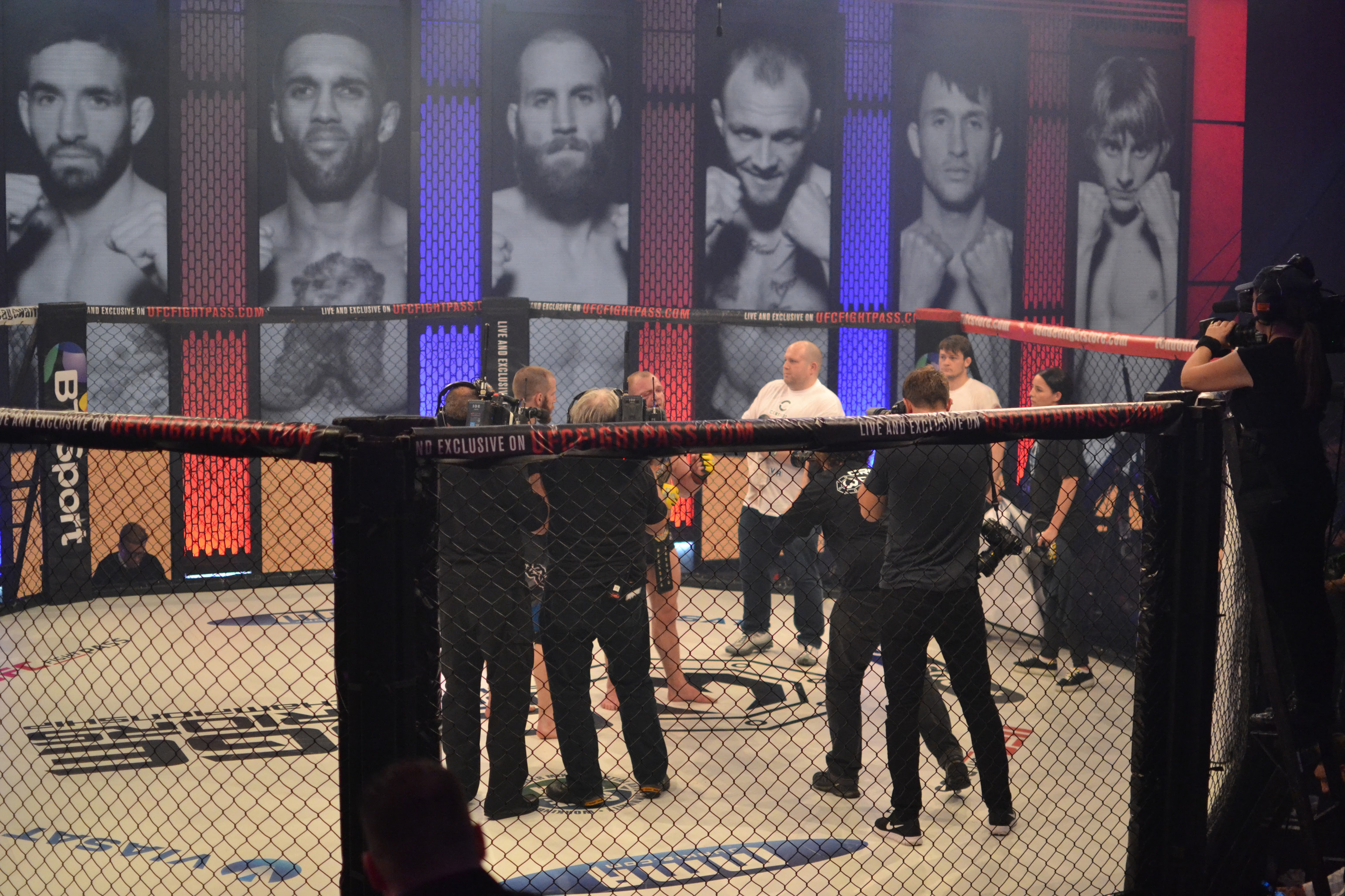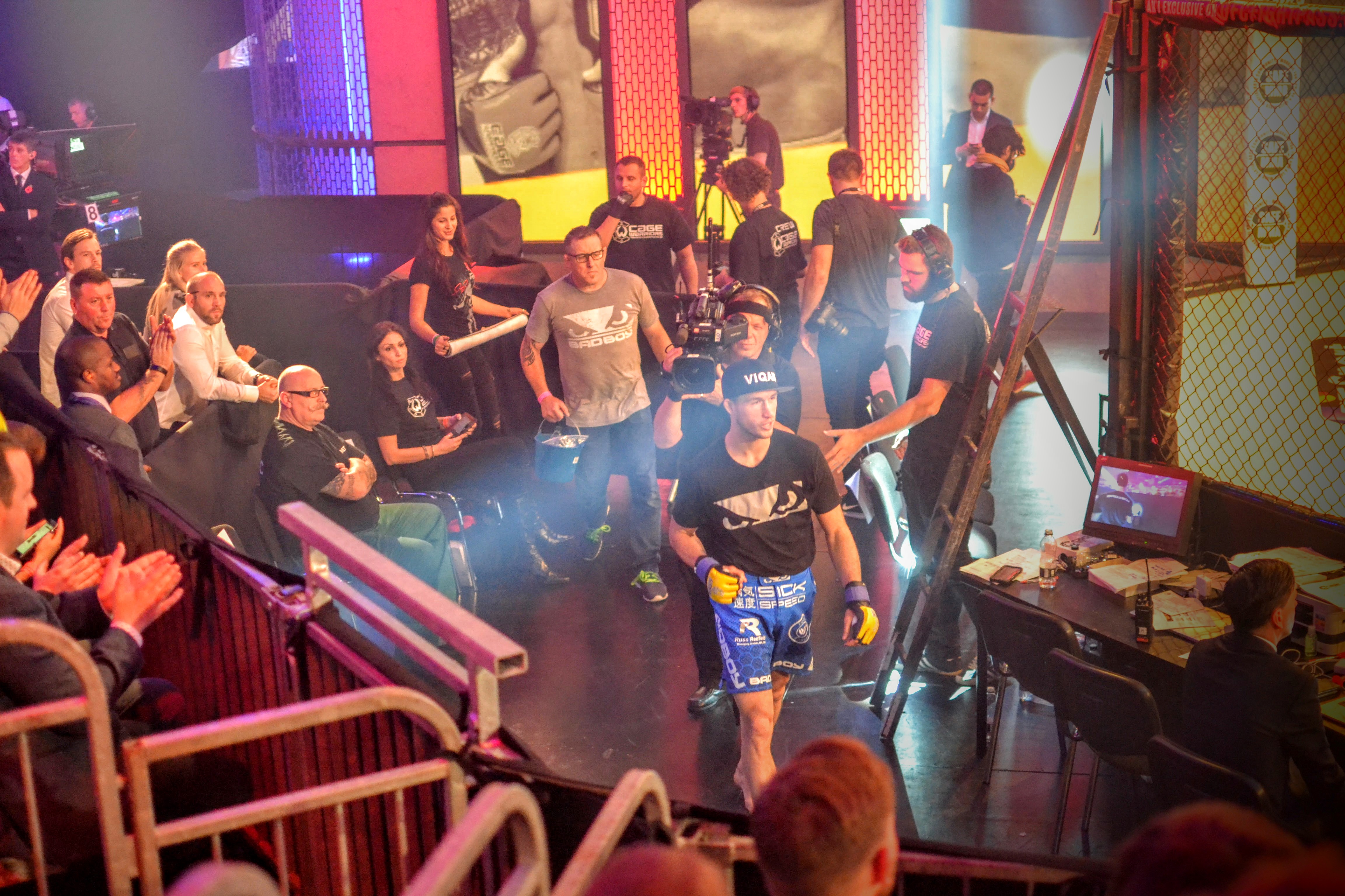 If you have ever watched beyond the octagon, there are a few of us that did or seen any of the BT studio sports shows then you will be familiar with the studio that the octagon was set up in, now to be honest as this was not a paying crowd and the fighters didn’t have their usually level of support I’m not sure how the atmosphere came across on TV but it only seemed like the levels reached tipping point when both Next Gen fighters with the major level of crowd support came alive, now if you have ever seen a Paddy ‘The Baddy’ Pimblet walkout it really is something else the crowd sing and dance along to his walkout song Where’s your head at, for him the energy he expends on his walkout alone is crazy but it did really bring the crowd alive.