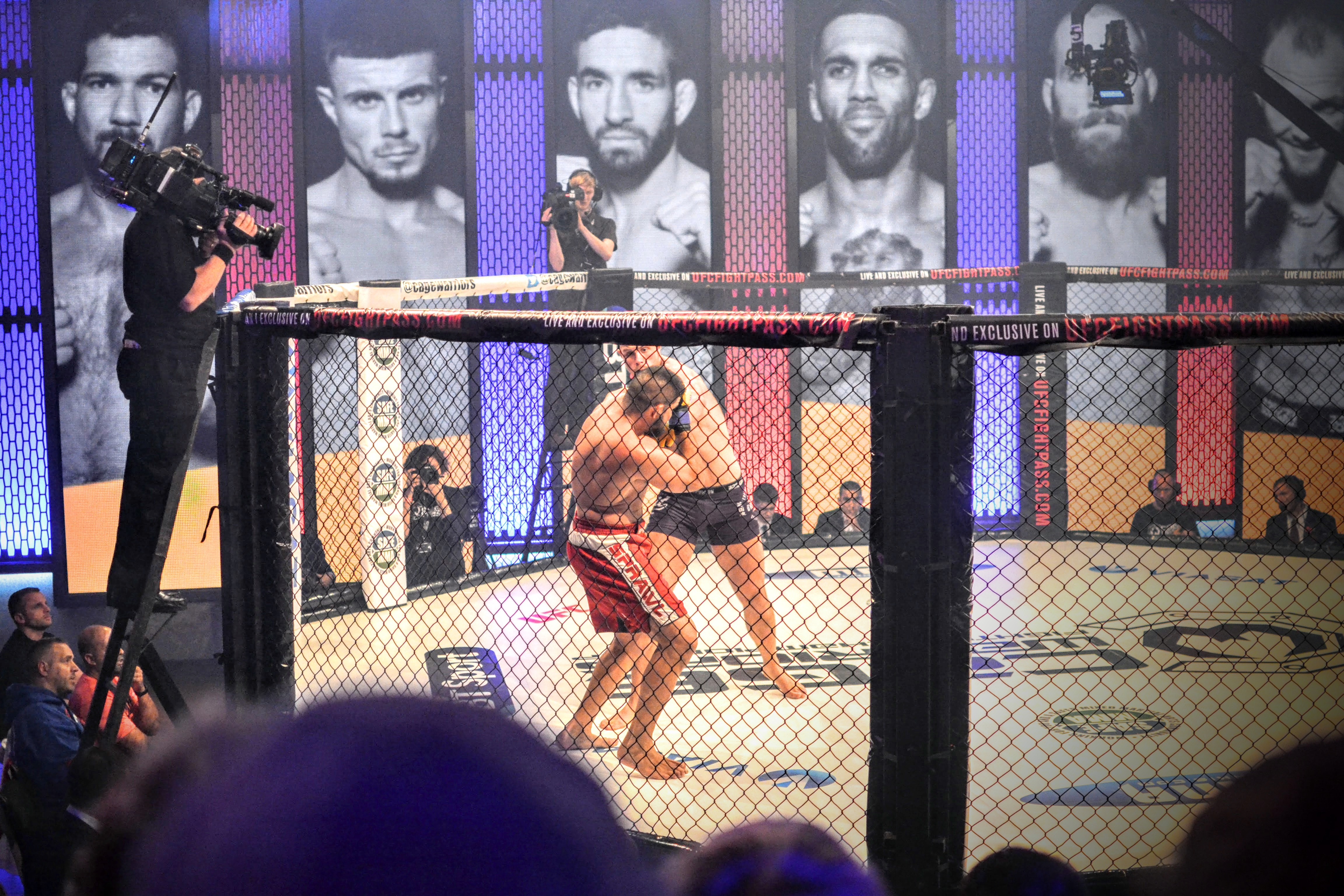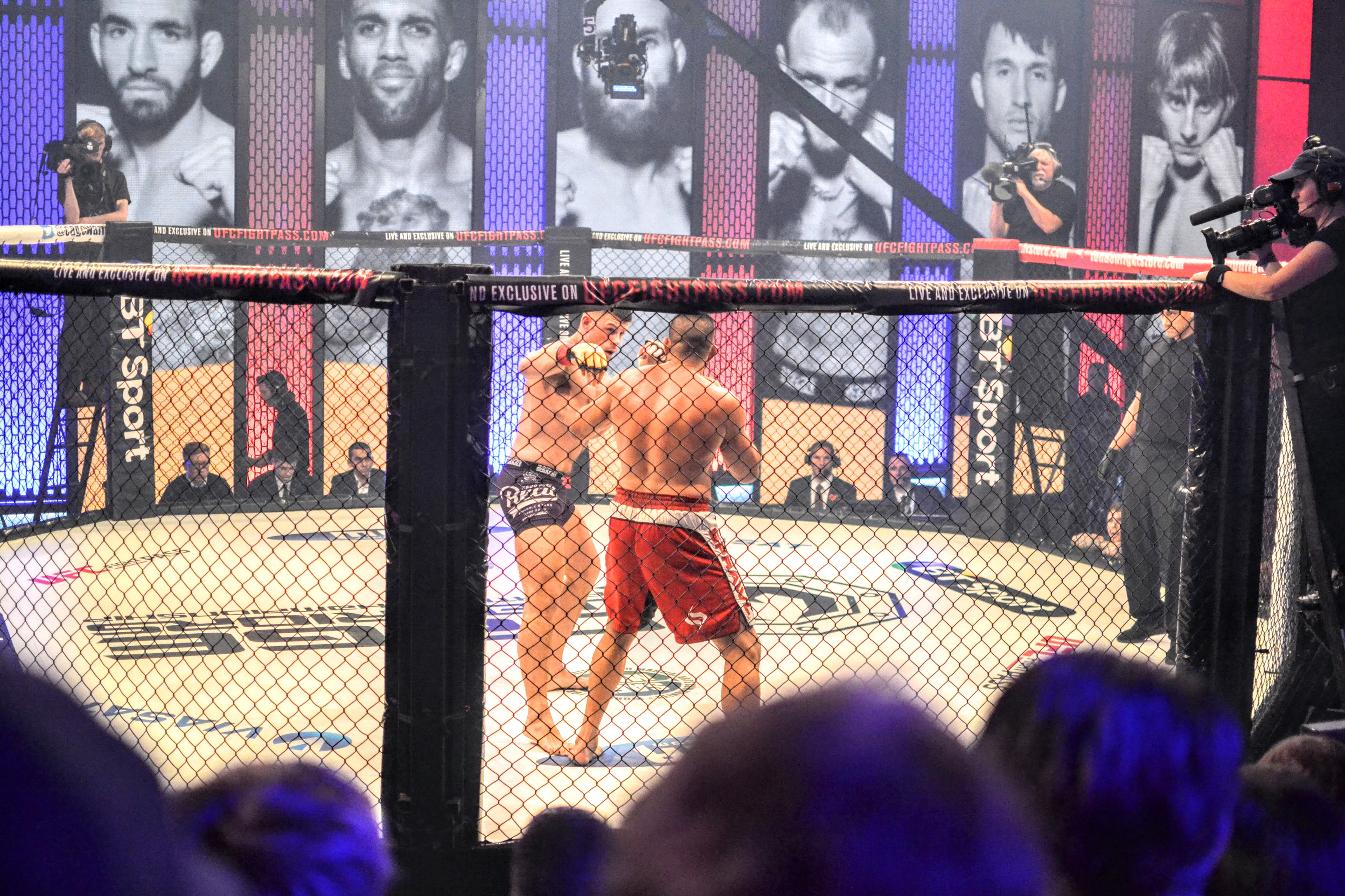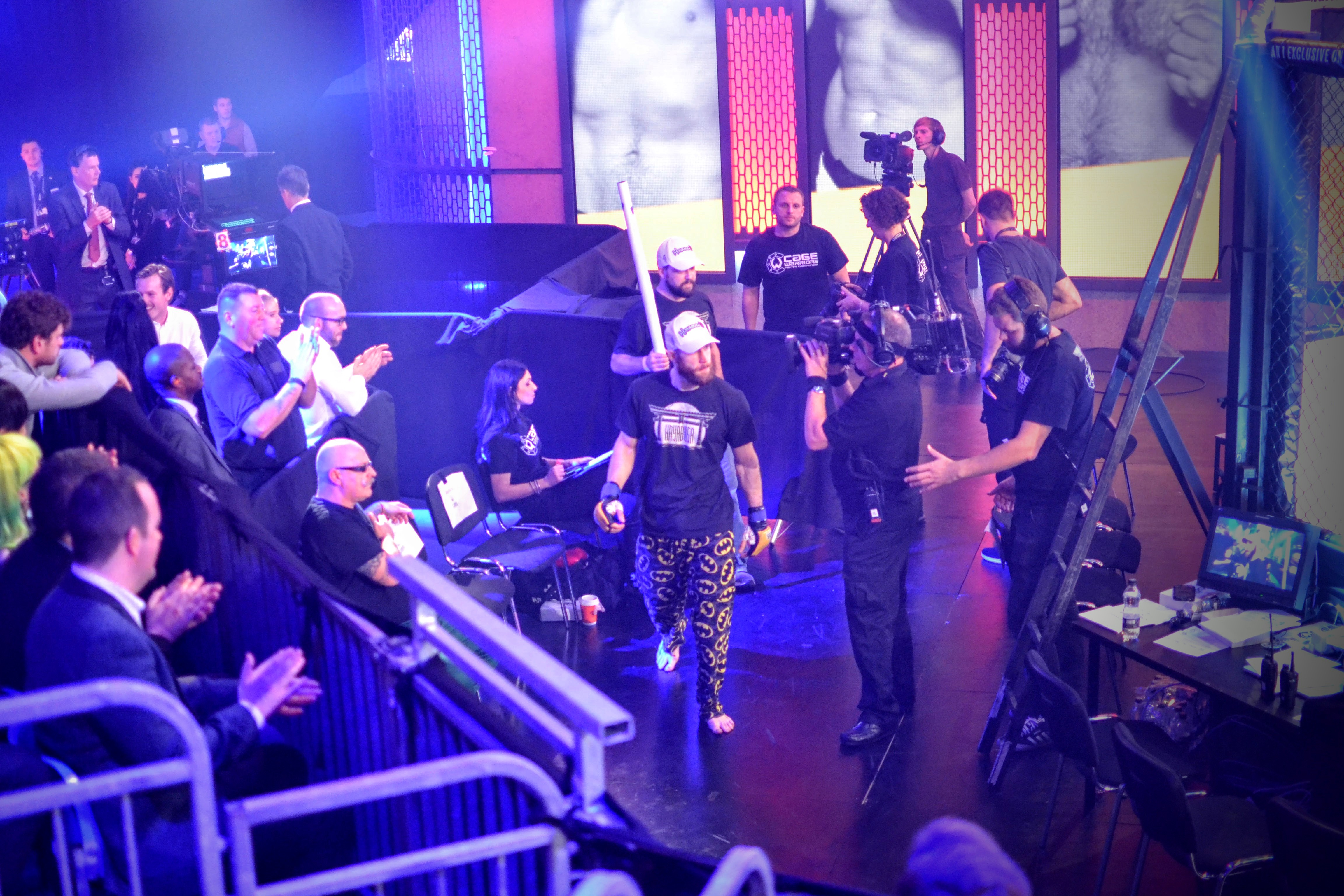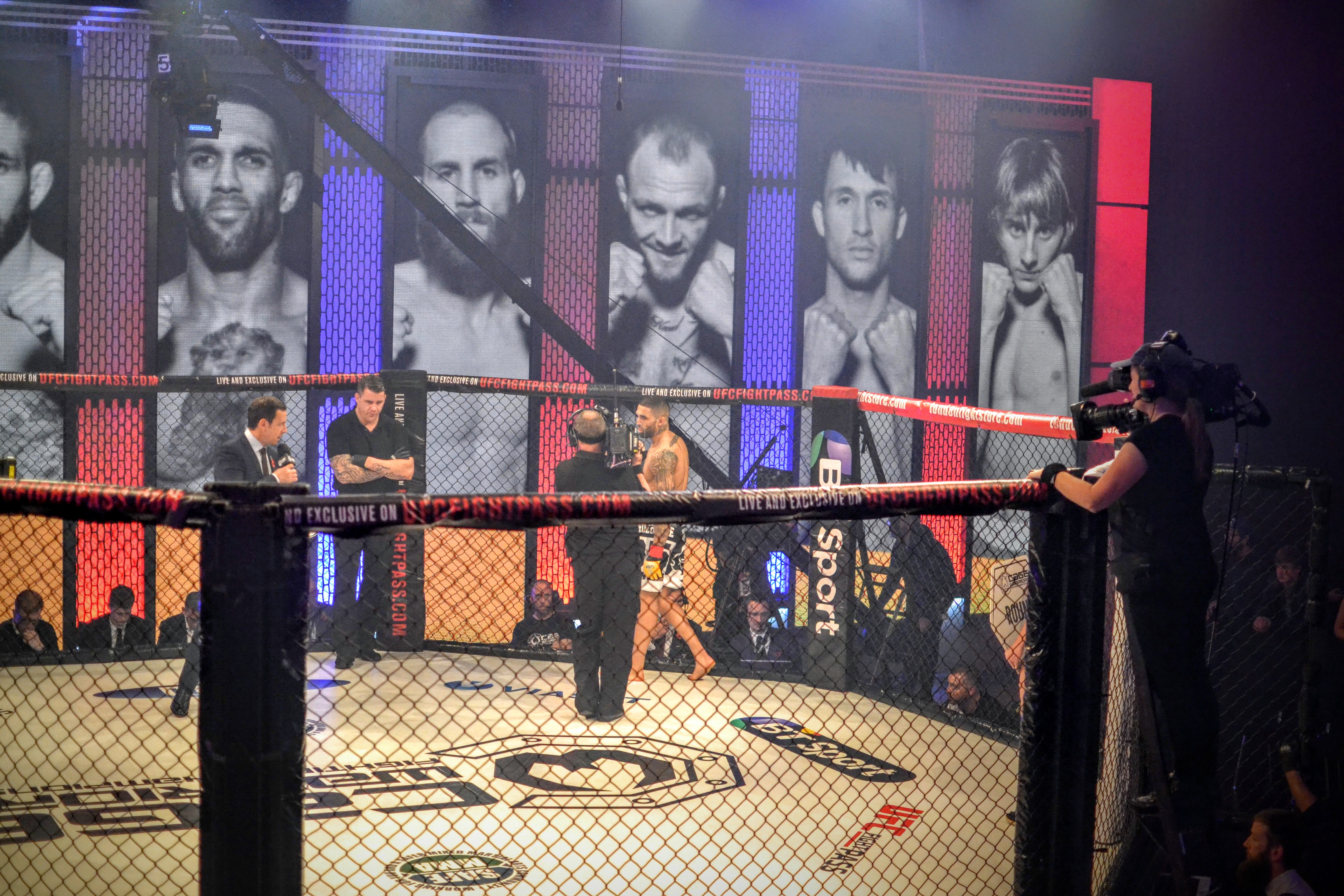 If you have ever watched beyond the octagon, there are a few of us that did or seen any of the BT studio sports shows then you will be familiar with the studio that the octagon was set up in, now to be honest as this was not a paying crowd and the fighters didn’t have their usually level of support I’m not sure how the atmosphere came across on TV but it only seemed like the levels reached tipping point when both Next Gen fighters with the major level of crowd support came alive, now if you have ever seen a Paddy ‘The Baddy’ Pimblet walkout it really is something else the crowd sing and dance along to his walkout song Where’s your head at, for him the energy he expends on his walkout alone is crazy but it did really bring the crowd alive.