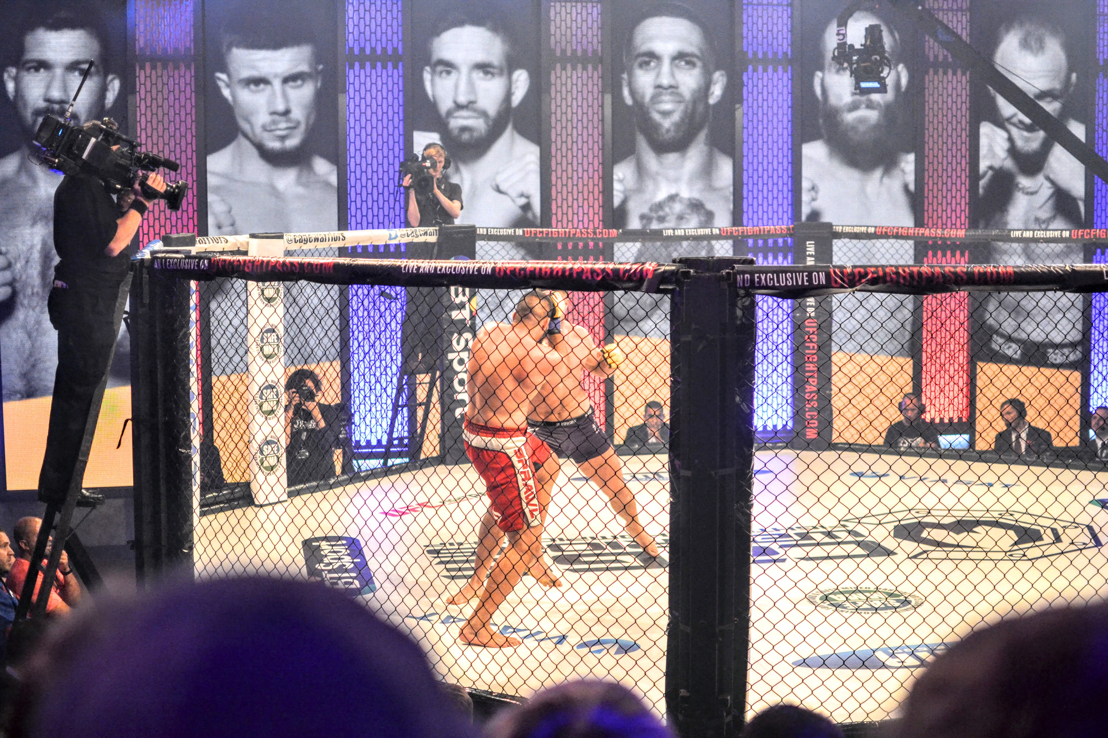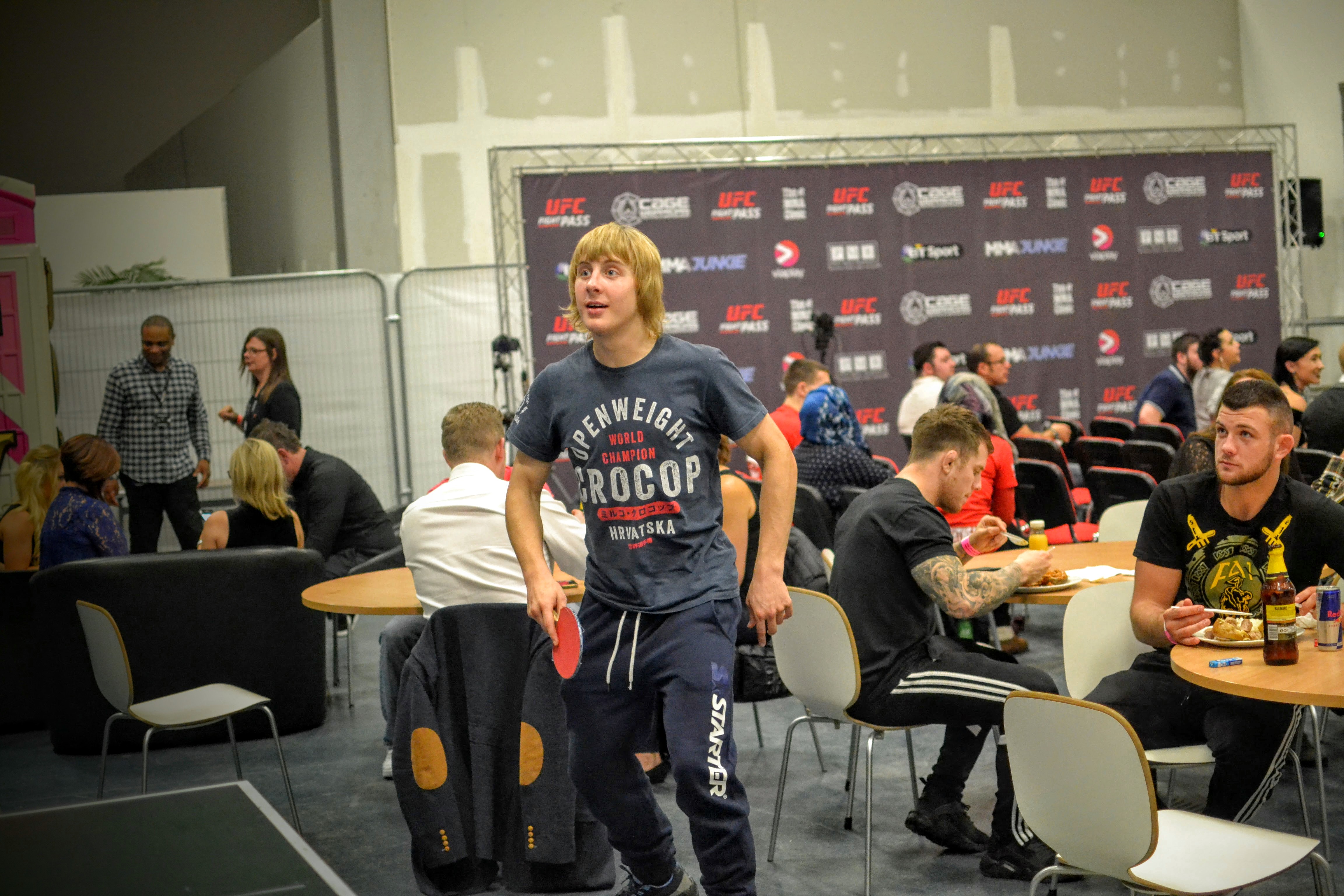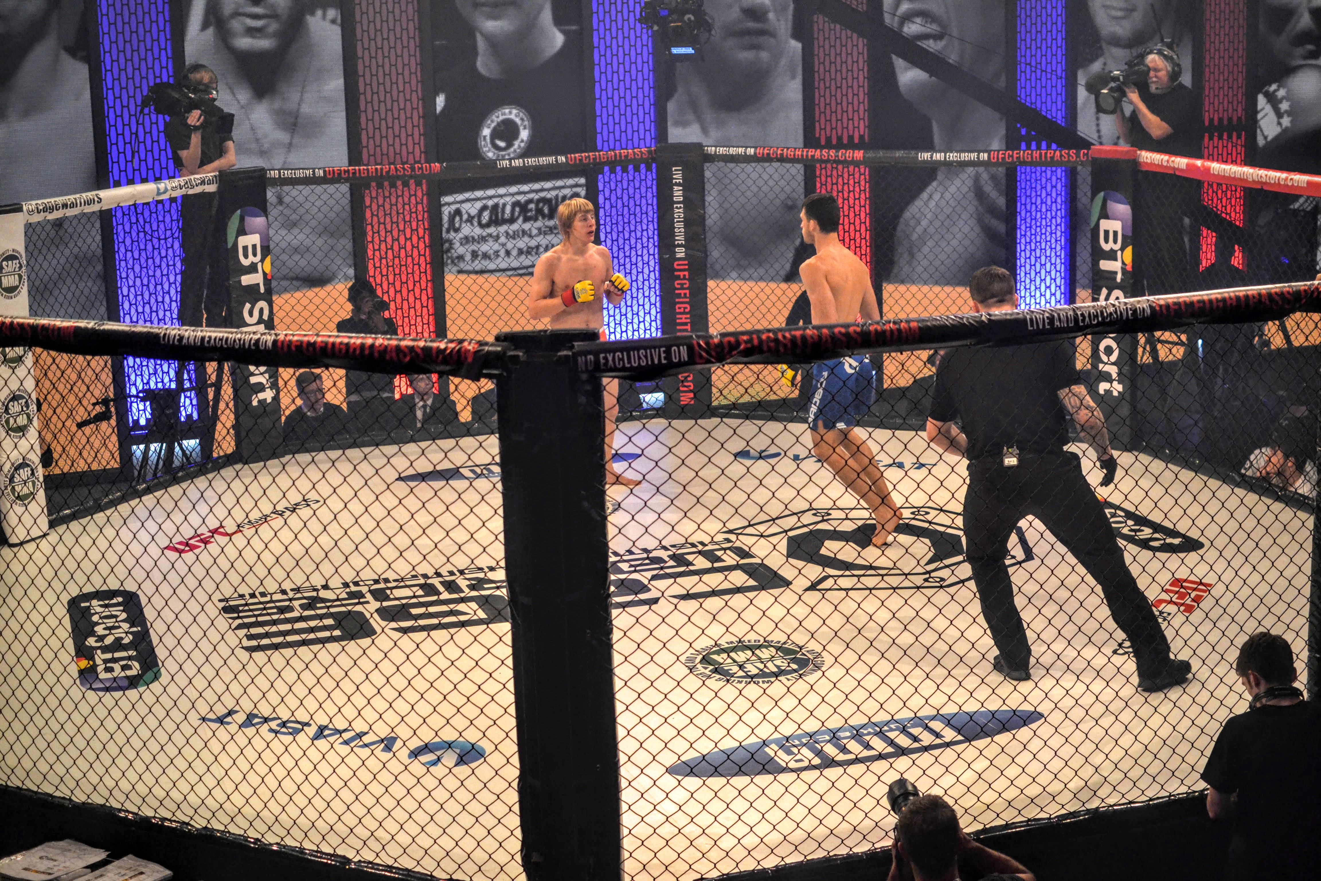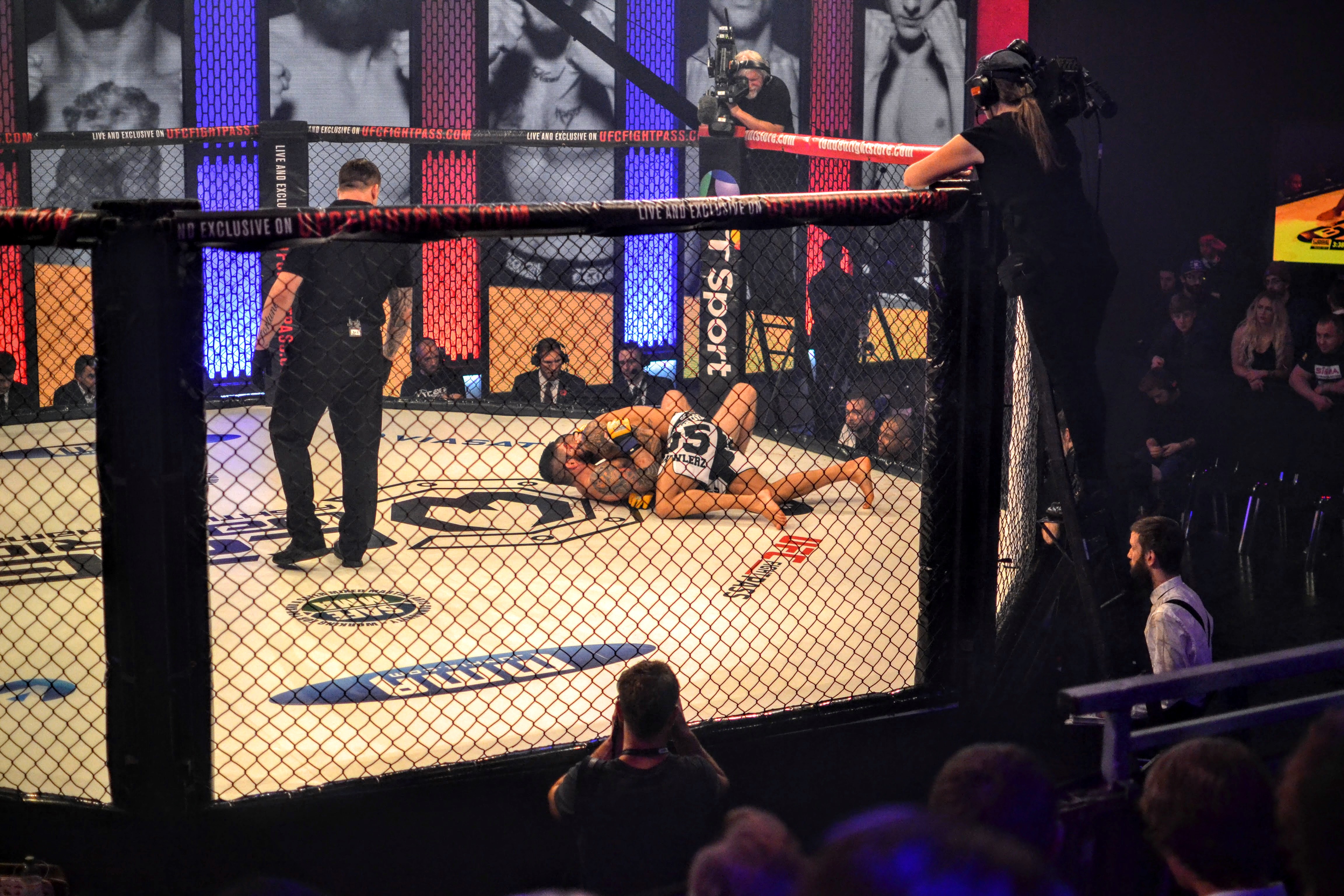 If you have ever watched beyond the octagon, there are a few of us that did or seen any of the BT studio sports shows then you will be familiar with the studio that the octagon was set up in, now to be honest as this was not a paying crowd and the fighters didn’t have their usually level of support I’m not sure how the atmosphere came across on TV but it only seemed like the levels reached tipping point when both Next Gen fighters with the major level of crowd support came alive, now if you have ever seen a Paddy ‘The Baddy’ Pimblet walkout it really is something else the crowd sing and dance along to his walkout song Where’s your head at, for him the energy he expends on his walkout alone is crazy but it did really bring the crowd alive.